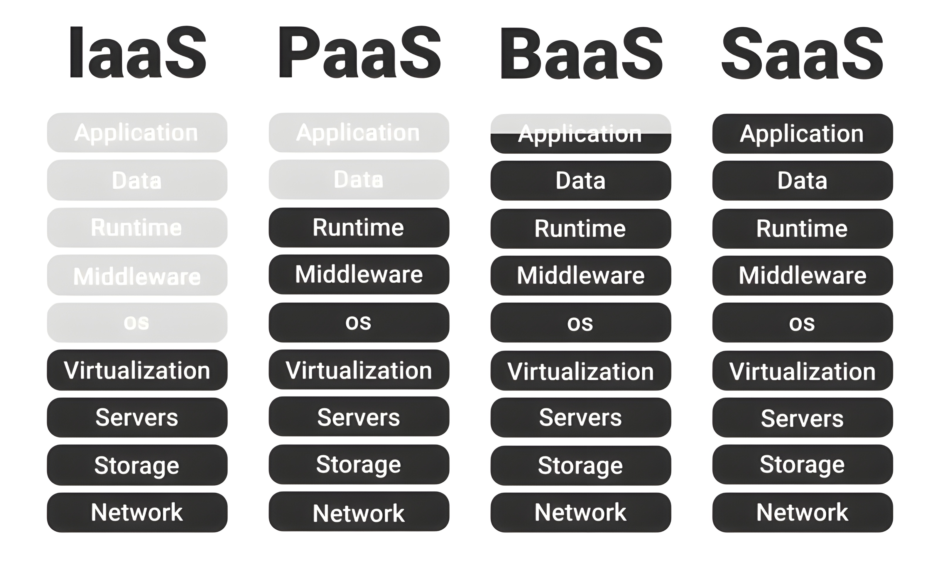 If there's a need for a highly customized database schema and you have the resources to manage it, then IaaS might be the way to go. If you want to be relieved of most backend tasks, then BaaS or SaaS might be a better choice. PaaS sits somewhere in between, providing a good deal of control—over app dev and deployment, database config, scaling, security, etc.—while still offering some management assistance.